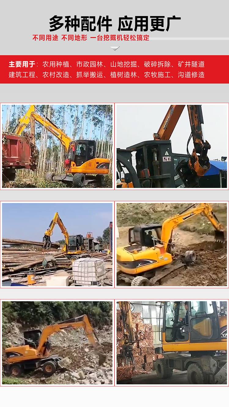 小型轮式挖掘机 犀牛品牌110-9G轮履式挖机 抓木搬运小帮手